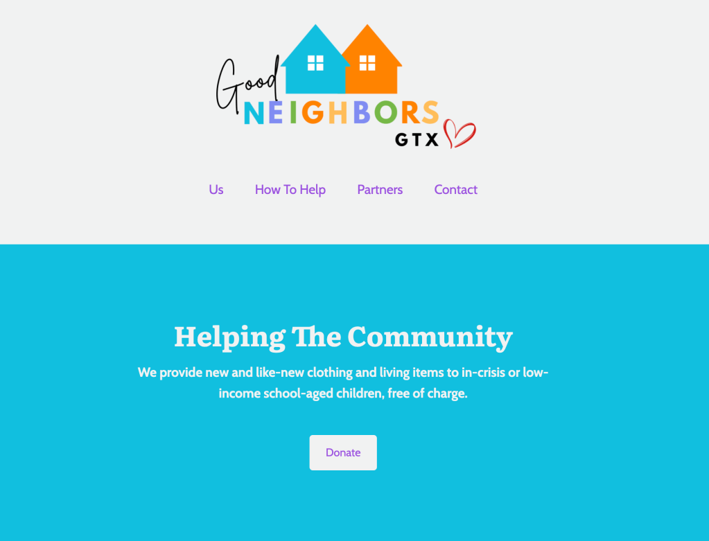 Good Neighbors GTX- a non-profit that provides new and like-new clothing and living items to in-crisis or low-income families in and around Georgetown, Texas.Zealous Reader- my first WordPress website, a blog for one of my web design classes.